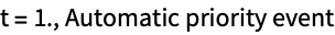 Automatic automatically determined False do not integrate the event function True integrate the event function - The settings for "Priority" can be any integer or Infinity. In the case of simultaneous events, the actions will be evaluated in sorted priority order.