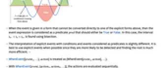 - When the event is given in a form that cannot be converted directly to one of the explicit forms above, then the event expression is considered as a predicate pred that should either be True or False. In this case, the interval