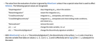- The value from the evaluation of action is ignored by WhenEvent unless it has a special value that is used to affect NDSolve. The following special values are recognized: