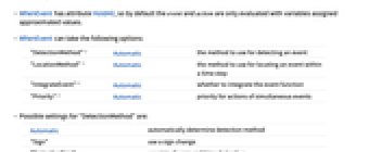 - WhenEvent[{event1,…},action] is treated as {WhenEvent[event1,action],…}.