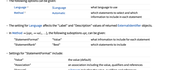 Language $Language what language to use Method Automatic which statements to select and which information to include in each statement - The setting for Language affects the "Label" and "Description" values of returned ExternalIdentifier objects.