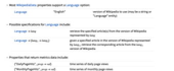 Language "English" version of Wikipedia to use (may be a string or "Language" entity) - Possible specifications for Language include: