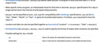 - Location and date can also be specified together as Association["Location"->locationspec,"Date"datespec].