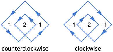 - A counterclockwise revolution has a value 1 and a clockwise revolution has a value -1. For several contours, the number of revolutions around p is the sum of the number of revolutions for each contour.