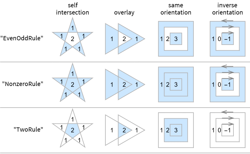 - Different winding rules "wrule" give different polygons. Possible winding rules include: