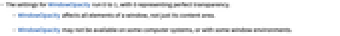 - WindowOpacity may not be available on some computer systems, or with some window environments.