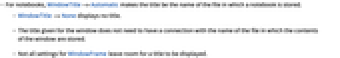 - For notebooks, WindowTitle->Automatic makes the title be the name of the file in which a notebook is stored.