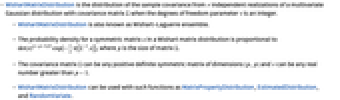 - WishartMatrixDistribution is the distribution of the sample covariance from ν independent realizations of a multivariate Gaussian distribution with covariance matrix Σ when the degrees of freedom parameter ν is an integer.