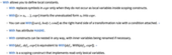 - With replaces symbols in expr only when they do not occur as local variables inside scoping constructs.