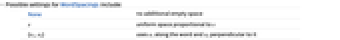 None no additional empty space s uniform space proportional to s {s1,s2} uses s1 along the word and s2 perpendicular to it