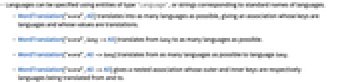 - WordTranslation["word",lang->All] translates from lang to as many languages as possible.