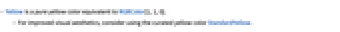 - Yellow is a pure yellow color equivalent to RGBColor[1,1,0].