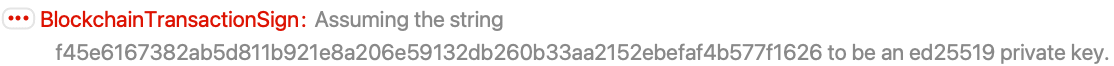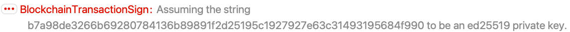 - The key for BlockchainTransactionSign must be a PrivateKey object or a hex string representing an ed25519 private key.
