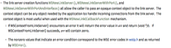 - The link server creation functions WSNewLinkServer(), WSNewLinkServerWithPort(), and WSNewLinkServerWithPortAndInterface() all allow the caller to pass an opaque context object to the link server. The context object can be any object needed by the application to handle incoming connections from the link server. The context object is most useful when used with the WSNewLinkCallbackFunction mechanism.
