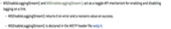 C Functions: WSEnableLoggingStream() WSLogStreamToFile() WSStopLoggingStream() WSStopLoggingStreamToFile()
