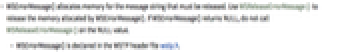 - WSErrorMessage() allocates memory for the message string that must be released. Use WSReleaseErrorMessage() to release the memory allocated by WSErrorMessage(). If WSErrorMessage() returns NULL, do not call WSReleaseErrorMessage() on the NULL value.