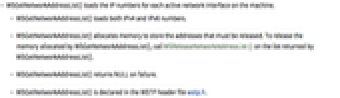 - WSGetNetworkAddressList() loads the IP numbers for each active network interface on the machine.