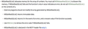 - WSGetReal32List() returns 0 in the event of an error, and a nonzero value if the function succeeds.