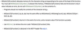 - WSGetUCS2Function() allocates memory for the character string corresponding to the name of the head of the function. You must call WSReleaseUCS2Symbol() to disown this memory. If WSGetUCS2Function() fails and the function's return value indicates an error, do not call WSReleaseUCS2Symbol() on the contents of s.