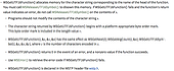 - The character string returned by WSGetUTF16Function() begins with a platform-appropriate byte order mark. This byte order mark is included in the length value v.