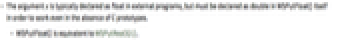 - The argument x is typically declared as float in external programs, but must be declared as double in WSPutFloat() itself in order to work even in the absence of C prototypes.