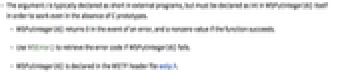 - WSPutInteger16() returns 0 in the event of an error, and a nonzero value if the function succeeds.