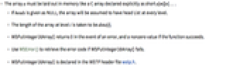 . - WSPutInteger16Array() returns 0 in the event of an error, and a nonzero value if the function succeeds.