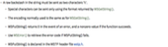 - WSPutString() returns 0 in the event of an error, and a nonzero value if the function succeeds.