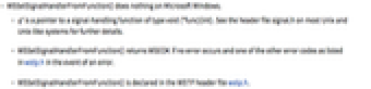 - WSSetSignalHandlerFromFunction() does nothing on Microsoft Windows.
