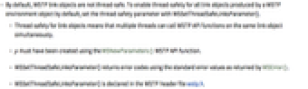 - By default, WSTP link objects are not thread-safe. To enable thread-safety for all link objects produced by a WSTP environment object by default, set the thread-safety parameter with WSSetThreadSafeLinksParameter().