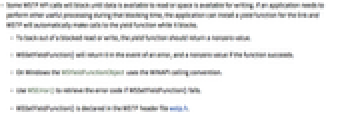 - Some WSTP API calls will block until data is available to read or space is available for writing. If an application needs to perform other useful processing during that blocking time, the application can install a yield function for the link and WSTP will automatically make calls to the yield function while it blocks.
