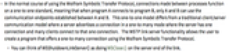 - In the normal course of using the Wolfram Symbolic Transfer Protocol, connections made between processes function on a one-to-one standard, meaning that when program A connects to program B, only A and B can use the communication endpoints established between A and B. This one-to-one model differs from a traditional client/server communication model where a server advertises a connection in a one-to-many mode where the server has one connection and many clients connect to that one connection. The WSTP link server functionality allows the user to create a program that offers a one-to-many connection using the Wolfram Symbolic Transfer Protocol.