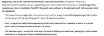 - The link service name registration will continue to run until the program calls WSStopRegisteringLinkService() or an error occurs with the operating system's service browsing mechanism.