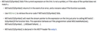 - WSTestUCS2Symbol() fails if the current expression on the link l is not a symbol, or if the value of the symbol does not match s.