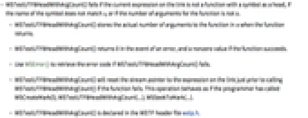 - WSTestUTF8HeadWithArgCount() fails if the current expression on the link is not a function with a symbol as a head, if the name of the symbol does not match s, or if the number of arguments for the function is not n.