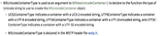 - WSUnicodeContainerType is used as an argument to WSNewUnicodeContainer() to declare to the function the type of Unicode string to use to create the WSUnicodeContainer object.