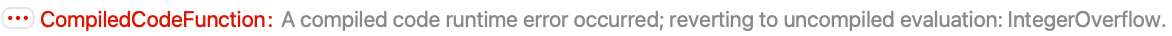 An overflow causes an error while running the function. The computation is terminated, a message is issued and the Wolfram Engine is used to compute the result: