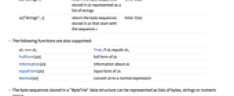 dsi===dsj True, if dsi equals dsj FullForm[ds] full form of ds Information[ds] information about ds InputForm[ds] input form of ds Normal[ds] convert ds to a normal expression - The byte sequences stored in a "ByteTrie" data structure can be represented as lists of bytes, strings or numeric arrays.