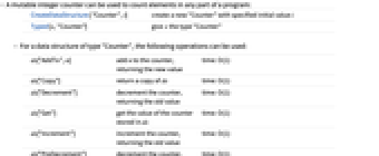 CreateDataStructure[ "Counter",i] create a new "Counter" with specified initial value i Typed[x,"Counter"] give x the type "Counter" - For a data structure of type "Counter", the following operations can be used: