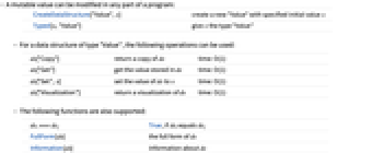 CreateDataStructure["Value",x] create a new "Value" with specified initial value x Typed[x,"Value"] give x the type "Value" - For a data structure of type "Value", the following operations can be used: