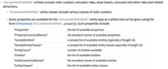 - "AmusementParkRide" entity classes include various classes of roller coasters.