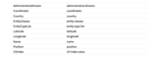 AdministrativeDivision administrative division Coordinates coordinates Country country EntityClasses entity classes EntityTypeList entity type list Latitude latitude Longitude longitude Name name Position position UVIndex UV index value