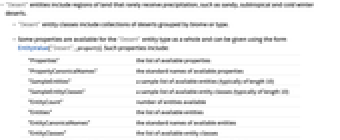 - "Desert" entity classes include collections of deserts grouped by biome or type.