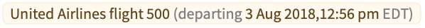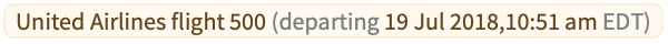 "Properties" the list of available properties "PropertyCanonicalNames" the standard names of available properties "SampleEntities" a sample list of available entities (typically of length 10) "SampleEntityClasses" a sample list of available entity classes (typically of length 10) "EntityCount" number of entities available "Entities" the list of available entities "EntityCanonicalNames" the standard names of available entities "EntityClasses" the list of available entity classes "EntityClassCanonicalNames" the standard names of available entity classes "PropertyClasses" the list of available property classes "PropertyClassCanonicalNames" the standard names of available property classes "PropertyCount" number of properties available - The following annotations can be used in the third argument of EntityValue["Flight",property,annotation]: