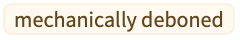 - "FoodBoneContent" entities include descriptions such as "bone in", "mechanically deboned" and "without shell".