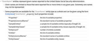 - Some properties are available for the "GivenName" entity type as a whole and can be given using the form EntityValue["GivenName",property]. Such properties include: