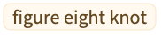 "Properties" the list of available properties "PropertyCanonicalNames" the standard names of available properties "SampleEntities" a sample list of available entities (typically of length 10) "SampleEntityClasses" a sample list of available entity classes (typically of length 10) "EntityCount" number of entities available "Entities" the list of available entities "EntityCanonicalNames" the standard names of available entities "EntityClasses" the list of available entity classes "EntityClassCanonicalNames" the standard names of available entity classes "PropertyClasses" the list of available property classes "PropertyClassCanonicalNames" the standard names of available property classes "PropertyCount" number of properties available - The following annotations can be used in the third argument of EntityValue["Knot",property,annotation]: