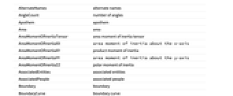 AlternateNames alternate names AngleCount number of angles Apothem apothem Area area AreaMomentOfInertiaTensor area moment of inertia tensor AreaMomentOfInertiaXX
