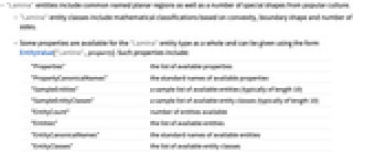 - "Lamina" entity classes include mathematical classifications based on convexity, boundary shape and number of sides.