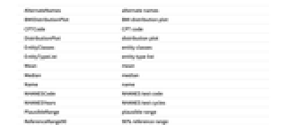 AlternateNames alternate names BMIDistributionPlot BMI distribution plot CPTCode CPT code DistributionPlot distribution plot EntityClasses entity classes EntityTypeList entity type list Mean mean Median median Name name NHANESCode NHANES test code NHANESYears NHANES test cycles PlausibleRange plausible range ReferenceRange90 90% reference range ReferenceRange95 95% reference range ReferenceRange99 99% reference range SamplePopulationValue sample population StandardDeviation standard deviation σ StandardDeviationInterval ±1σ range